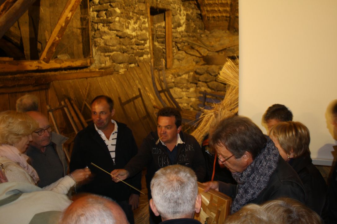 Passionné et passionnant dans ses explications, Jean-Luc Rodot a répondu avec précision et humour aux nombreuses questions de l’assistance et a présenté également quelques objets réalisés par des artistes. Illustration de la diversité de la production possible : deux ruches en paille de seigle et des coffrets de marqueterie complétaient les traditionnels « cloassoux » utilisés pour la couverture des chaumières.